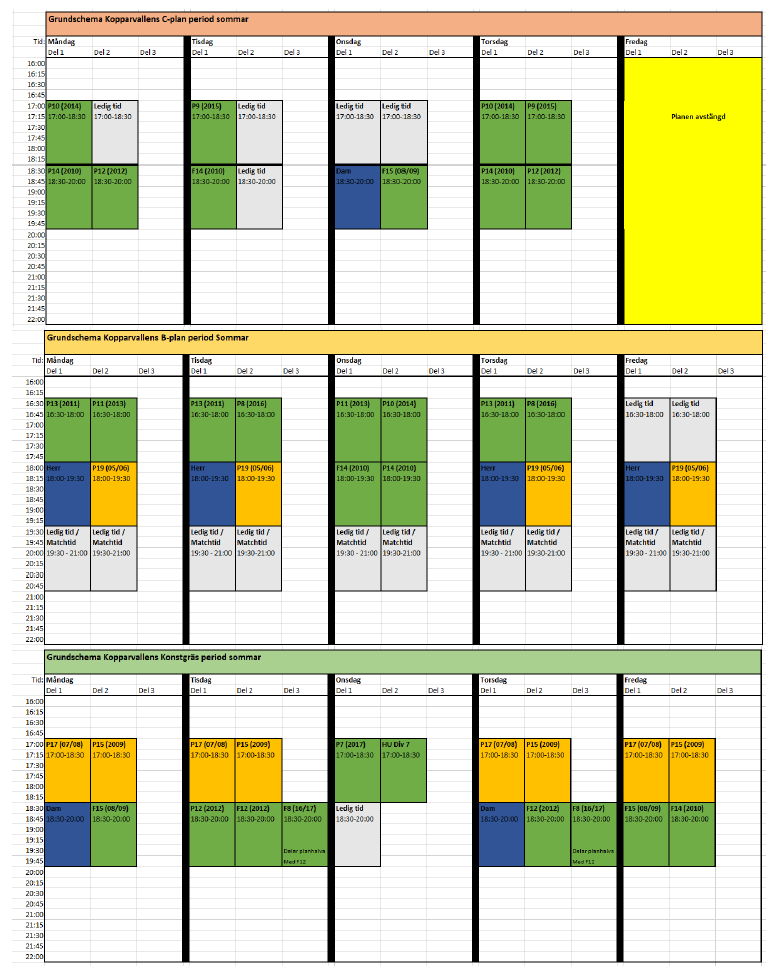 Jag har gjort ett grundschema för perioden som är godkänt av våra fotbollsansvariga. Slå ett öga på schemat och återkom om ni vill ändra något.